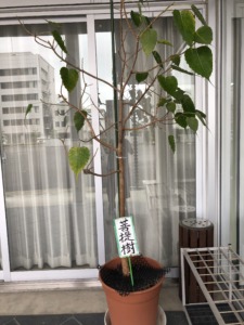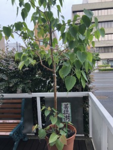 コミュニティホール東側のテラスにありました菩提樹。以前から、元気がなくなってきていました。植栽奉仕隊の方々にて、植替えを実施していただき、元気を取り戻しました。