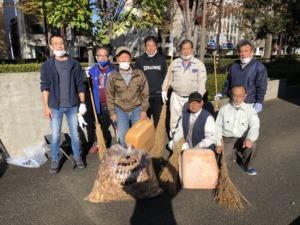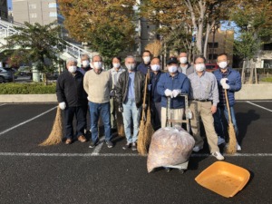 ボランティア袋に4~6袋の落ち葉がたまります。(21日までは)掃除のそばから、落ち葉は落ちてきますが即是道場の教えをもとに、貴重なひと時を菩薩行実践につなげることができて、大変ありがたいお役です。掃除後の街路や境内を見たご婦人は、「本当に心も気持ちもスッキリするわね」との感想をのべてくれました。
