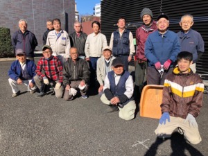 28日は、植栽奉仕隊のみなさんとコラボ。15人の方が8時から参加。なんと、いつもの4倍の25袋の落ち葉を回収しました。