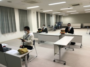 参加者は、教会の研修室と自宅あるいは職場から参加をしていただきました。8:30から9:45までは支部壮年部長会議を行いました。ご供養の後、現状報告と今後の支部活動の方向性について、みなさんからお聞きしました。