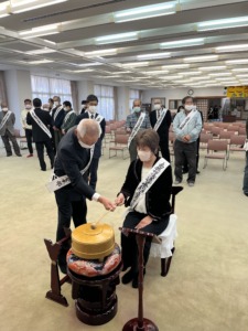 儀礼・儀式の第二回目として、➀鐘 ②木鉦について、前回同様、インストラクターの皆さんに、丁寧かつ分かりやすく、ご指導いただきました。当日は、大月教会から4名の皆さん、および数名の支部長もご参加いただき、総勢41名の参加者さんが法座席に集い、熱心に学ぶことができました。