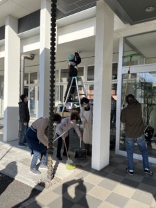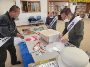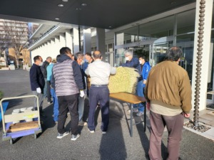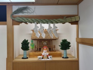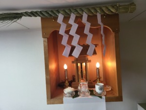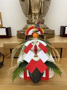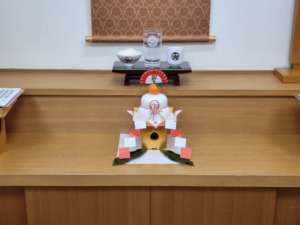法座納めの24日。壮年部は、教会の外で教会玄関の門松づくり。法座席で、御宝前、戒名室、お勝手の鏡餅のお飾りをさせて頂きました。甲府教会伝統の壮年による手作りの門松と鏡餅。70周年を迎える新年にふさわしい門松、正月飾りをさせて頂きました。