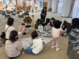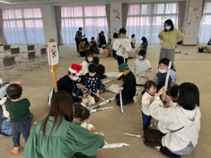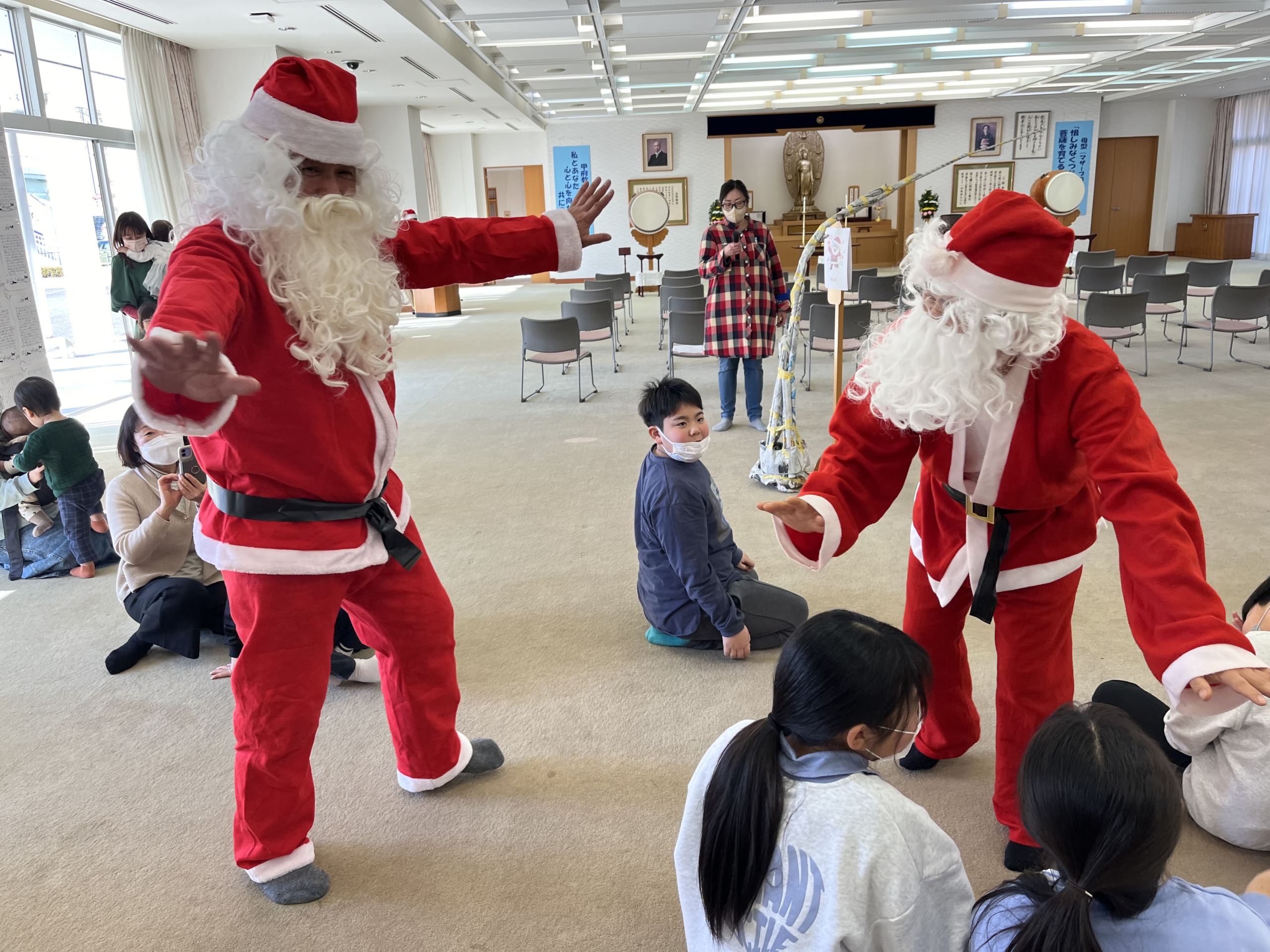 紙芝居による読み聞かせ、お菓子釣り・トナカイ輪投げゲーム、フォトコーナーで写真撮影などさせていただきました。