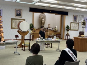 釈迦牟尼仏ご命日布薩の日に、本部からの式典の配信を視聴後、防災講演会を開催しました。