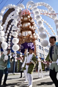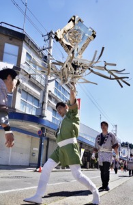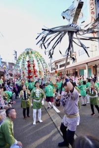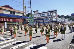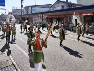 5年ぶりの生誕地まつり。晴天の下、鳴り物、マトイ(中マトイ、成年マトイ)、万灯、応援と総勢120名が一丸となって十日町の沿道を行進いたしました。