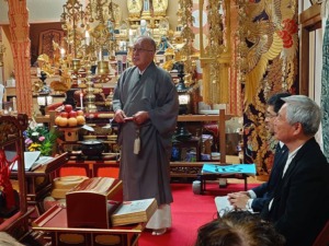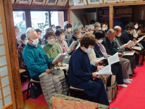 城南1~3支部主催で永照寺をお借りして40名ほどが参集し、世界平和を祈願しました。
