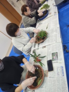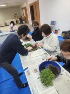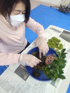 甲府第2支部の内藤さんを講師にお招きして苔玉作りをしました。土や苔に触れ楽しく唯一無二の作品が完成しました。