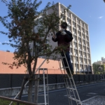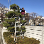 壮年は全支部により6日に高所や窓ふき。同時に、植栽奉仕隊のみなさんも道場内の植栽の手入れを行いました。